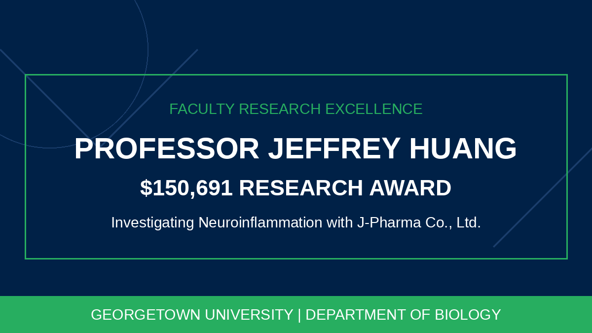 The Department of Biology is proud to announce that Professor Jeffrey Huang has been granted a $150,691 research award from J-Pharma Co., Ltd. to investigate potential therapeutic pathways for…