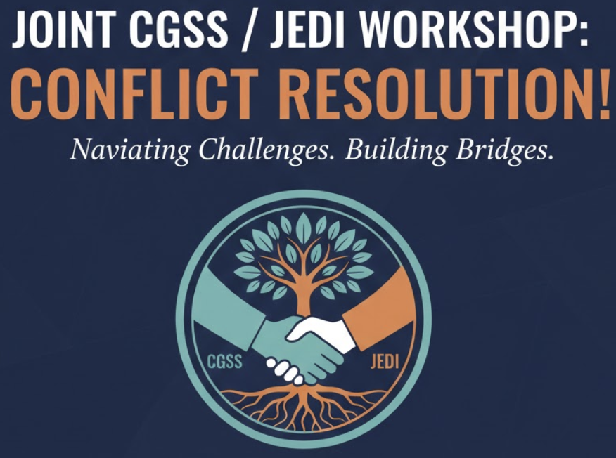 Conflict resolution: Joint CGSS/JEDI workshop on dealing with conflict featuring a presentation followed by a discussion led by Gina.